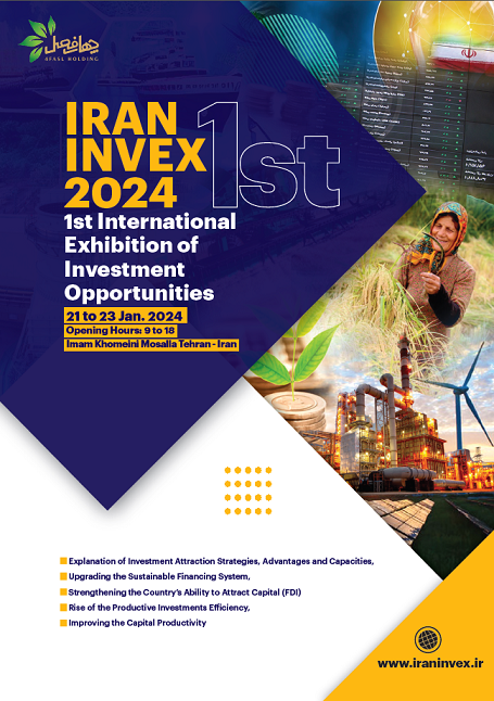 order to promote the exiting investment opportunities in different economic and industrials sections of the Islamic Republic of Iran including energy, tourism, health, industrial towns, environment, knowledge-based and startups, venture capitals, social innovation, regional development, Intelligence, creative industries, etc.; the 1st International Exhibition of Investment Opportunities in the Islamic Republic of Iran (IranInvex) will be held on January 21-23, 2024, at Imam Khomeini's Mosalla in Tehran.